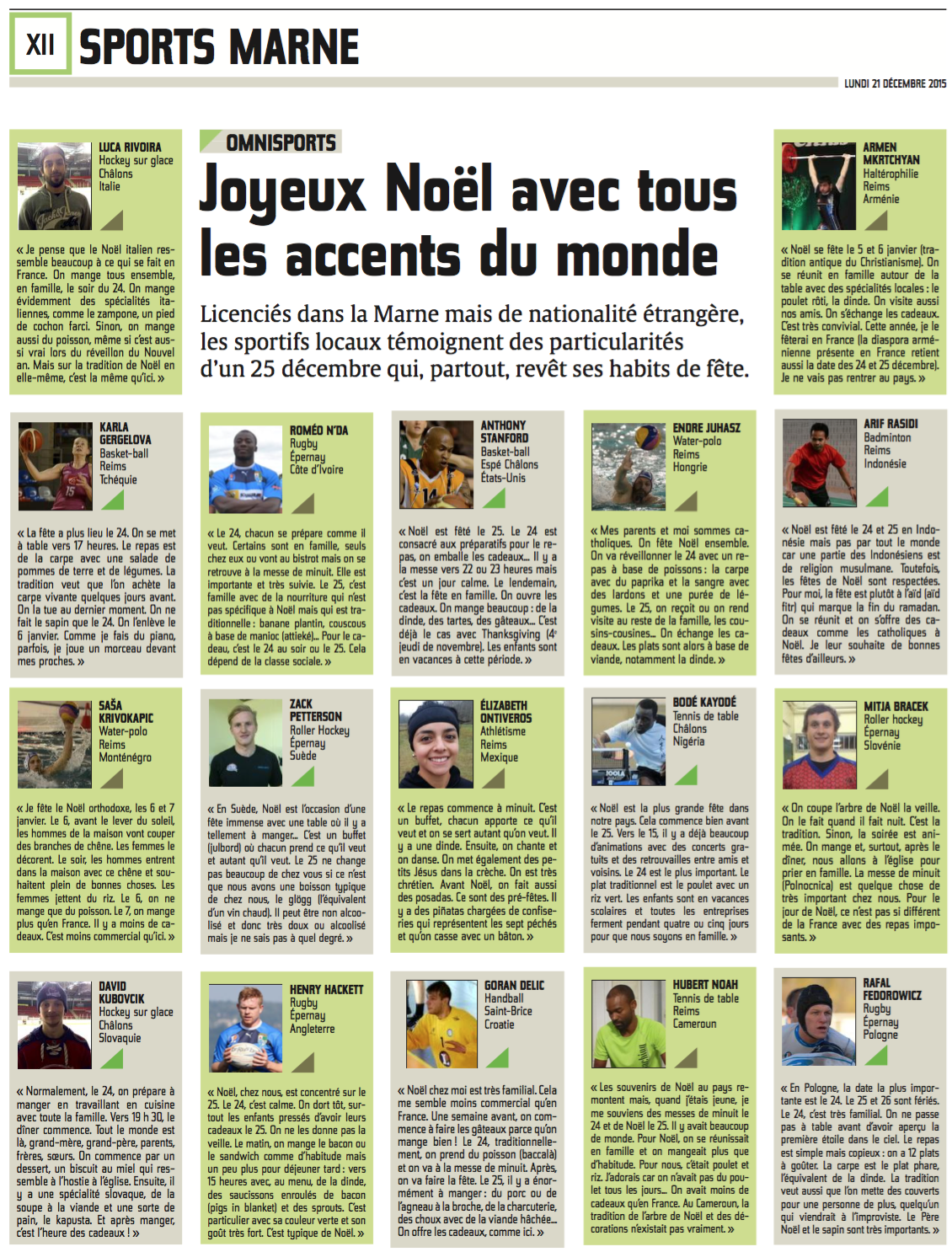 Type de presse : Journal l'Union du 21 décembre 2015