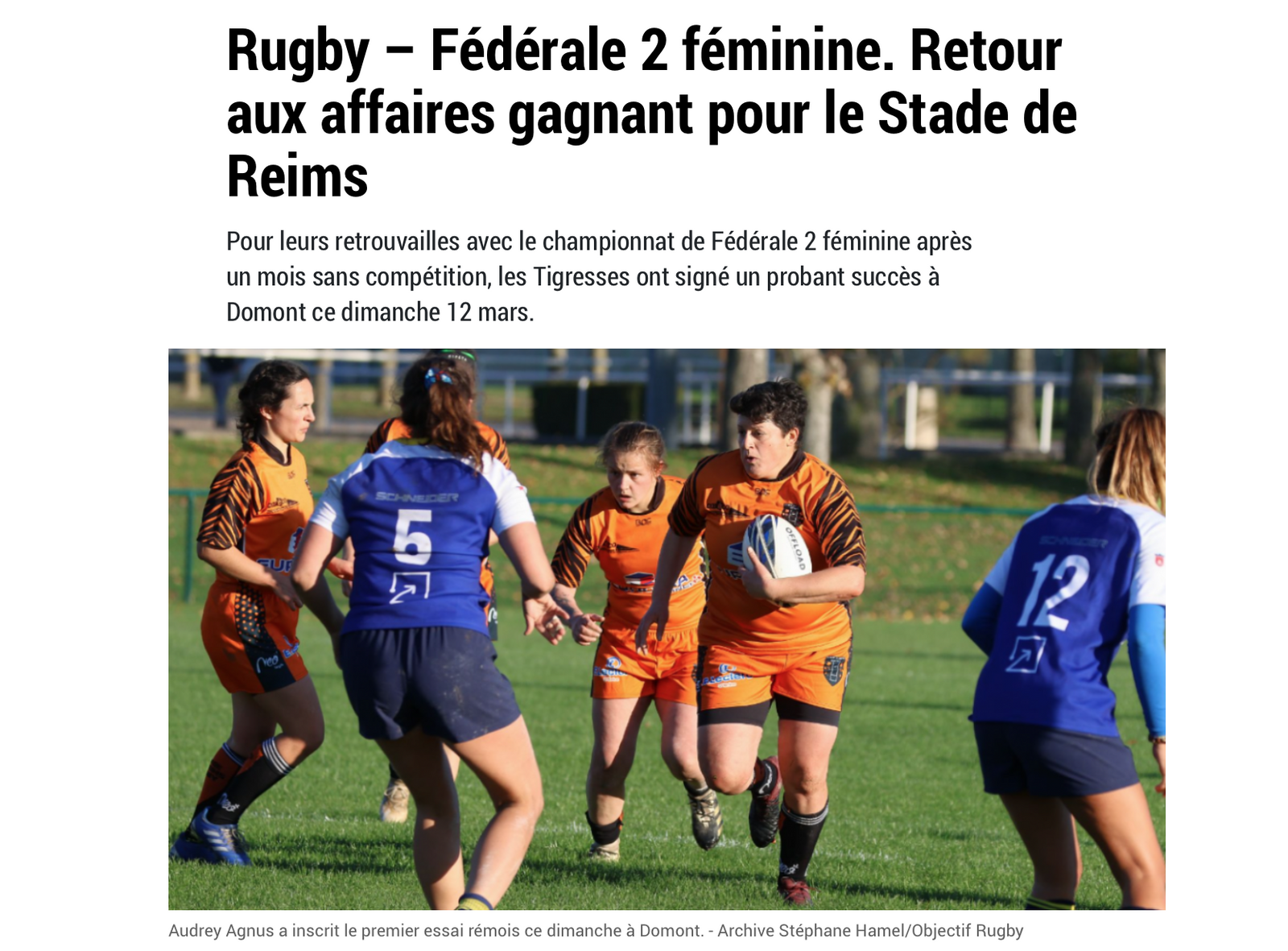 Evènement : Article sur les Tigresses et le derby entre le Stade de Reims Rugby et Châlon en Champagne