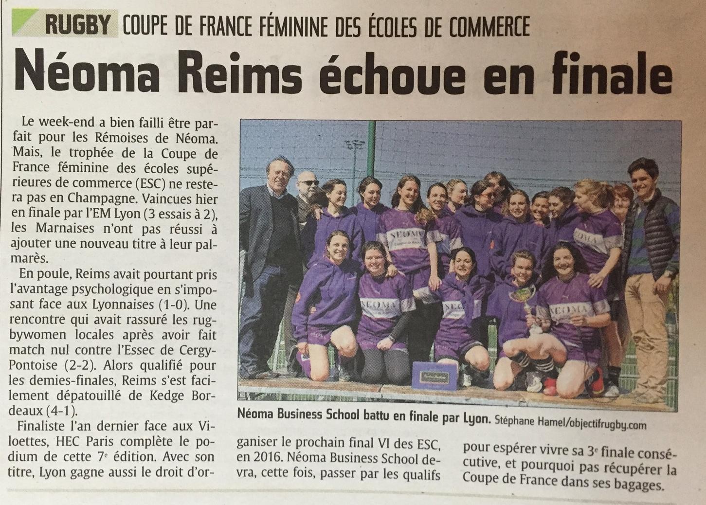 Evènement : Photo de la coupe de France féminine des écoles de commerces "Néoma Reims échoue en finale" et Photo de l'équipe de France Universitaire "Le 3 nations on en reprendrait bien une coupe"
