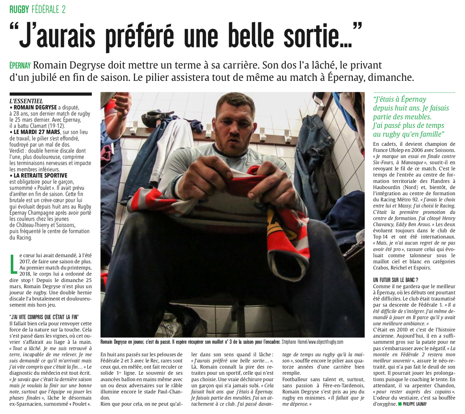 Evènement : Article au sujet de Romain Degryse "J'aurais préféré une belle sortie"