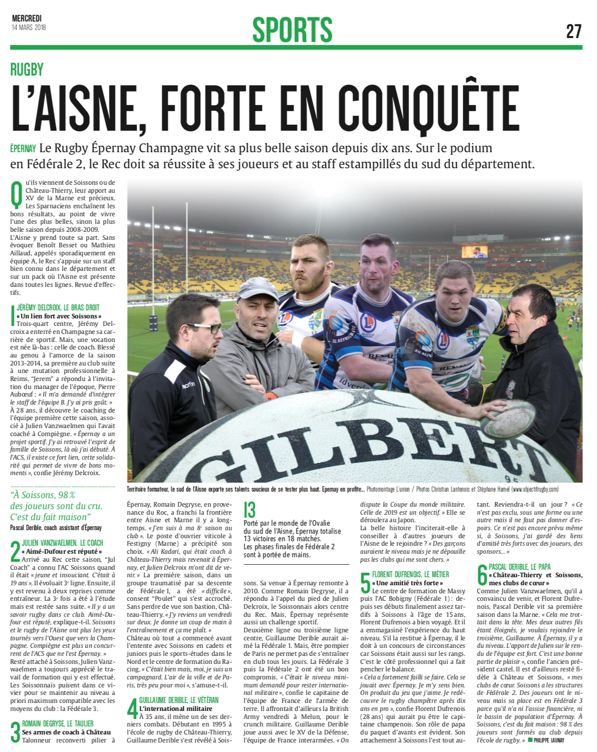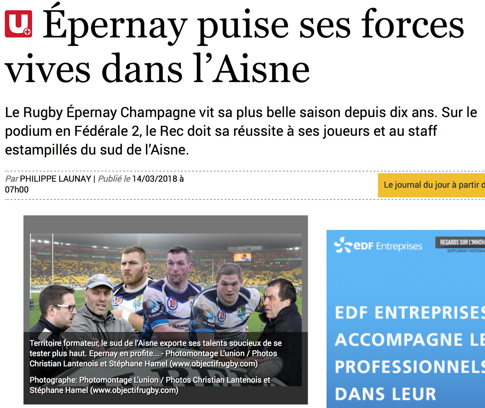 Evènement : Article au sujet des joueurs d'Epernay dans l'article : "Epernay puise ses forces vives dans l'Aisne"
