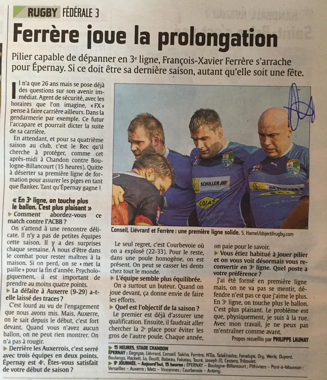 Evènement : Article sur Epernay "Ferrère joue la prolongation".