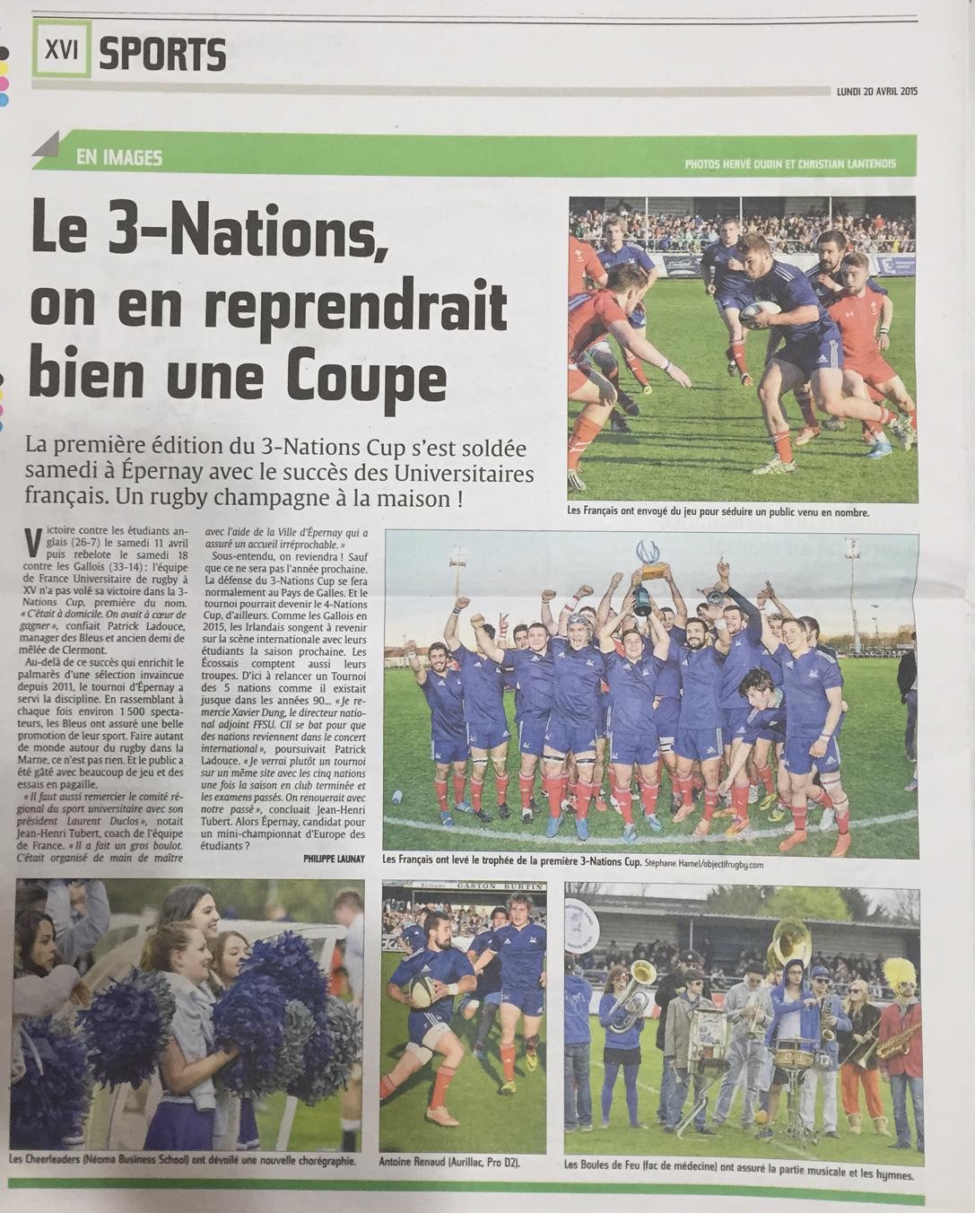 Evènement : Photo de la coupe de France féminine des écoles de commerces "Néoma Reims échoue en finale" et Photo de l'équipe de France Universitaire "Le 3 nations on en reprendrait bien une coupe"