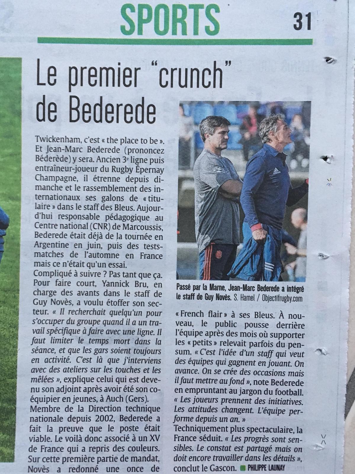 Evènement : Article au sujet "Le premier crunch de Bederede", dans le cadre du match entre l'Angleterre et la France dans le tournoi des 6 nations.
