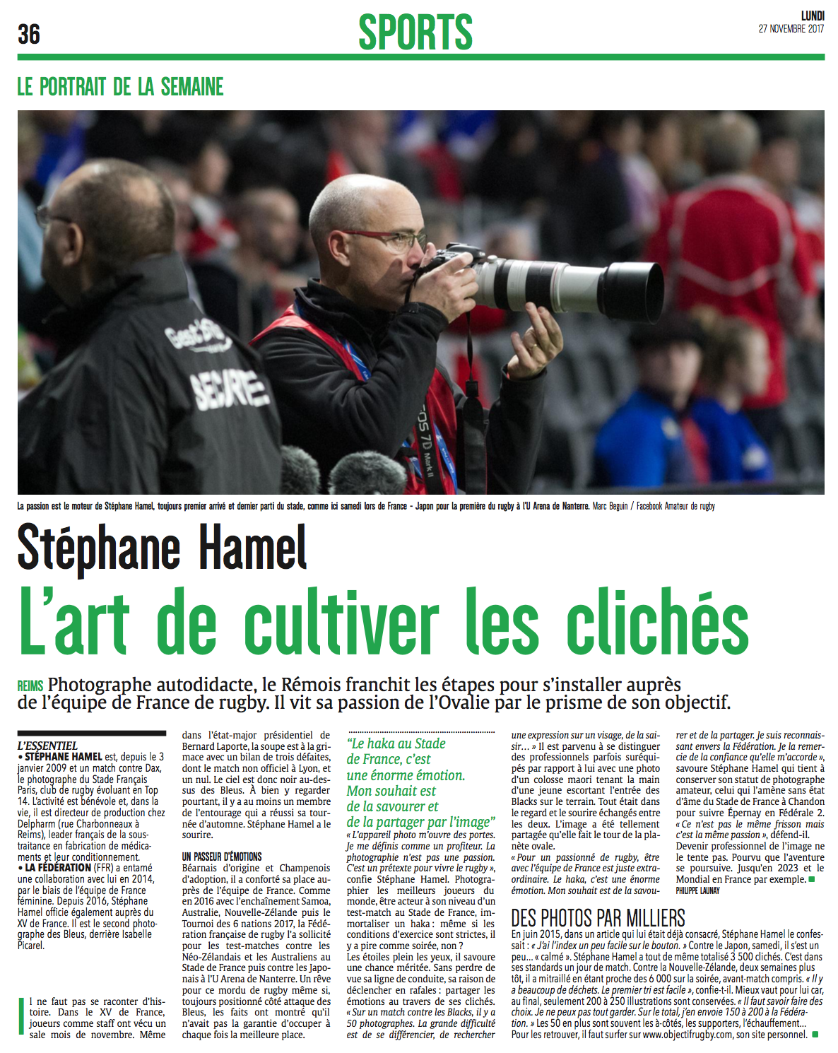 Evènement : Article : Stéphane Hamel aime le rugby haut en couleur