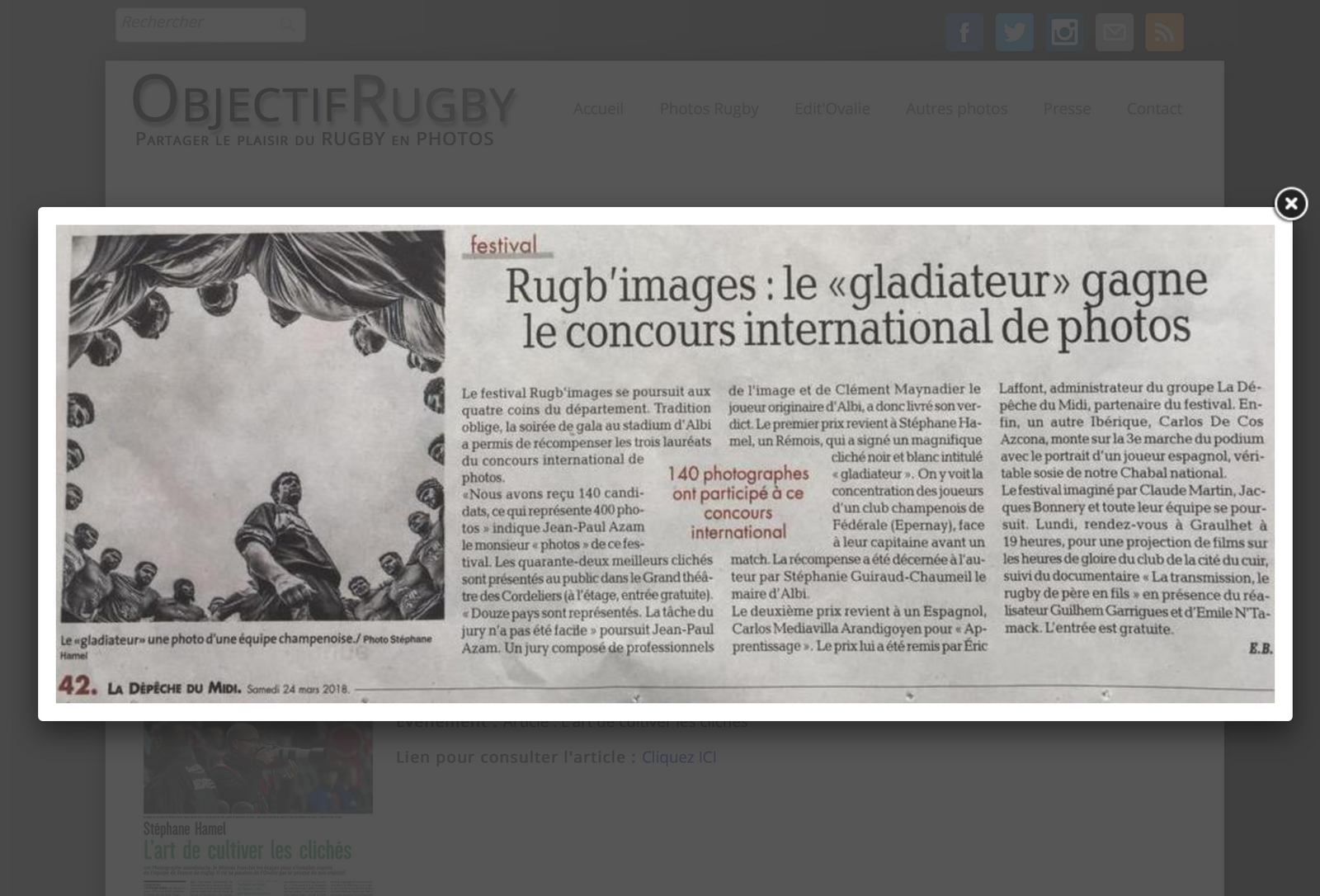 Lien pour consulter l'article dans le site Rugb'images : Cliquez ICI
